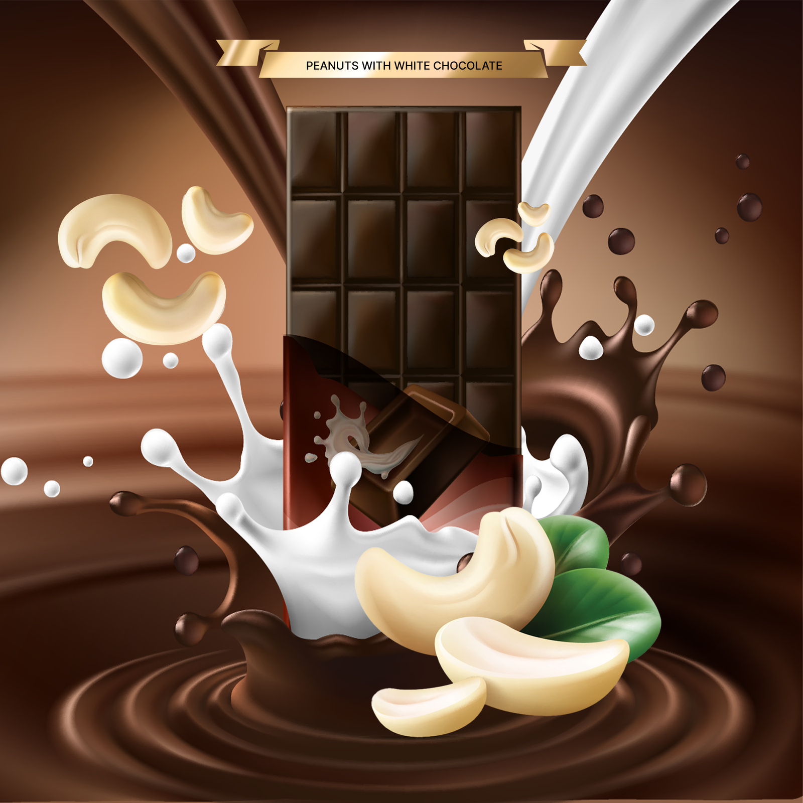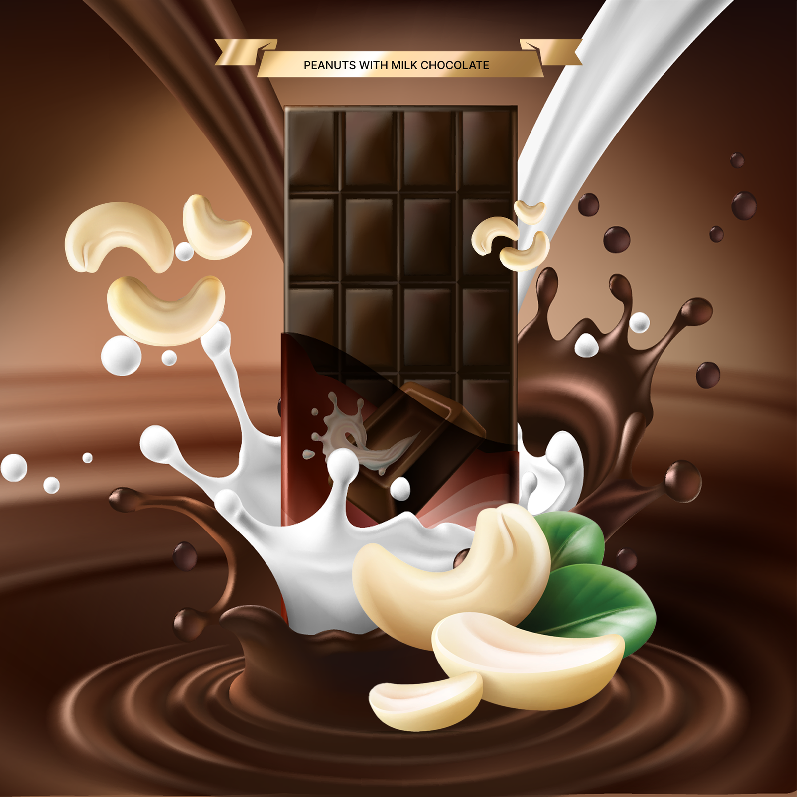 Milk chocolate with macadamias – sweet & nutty harmony.