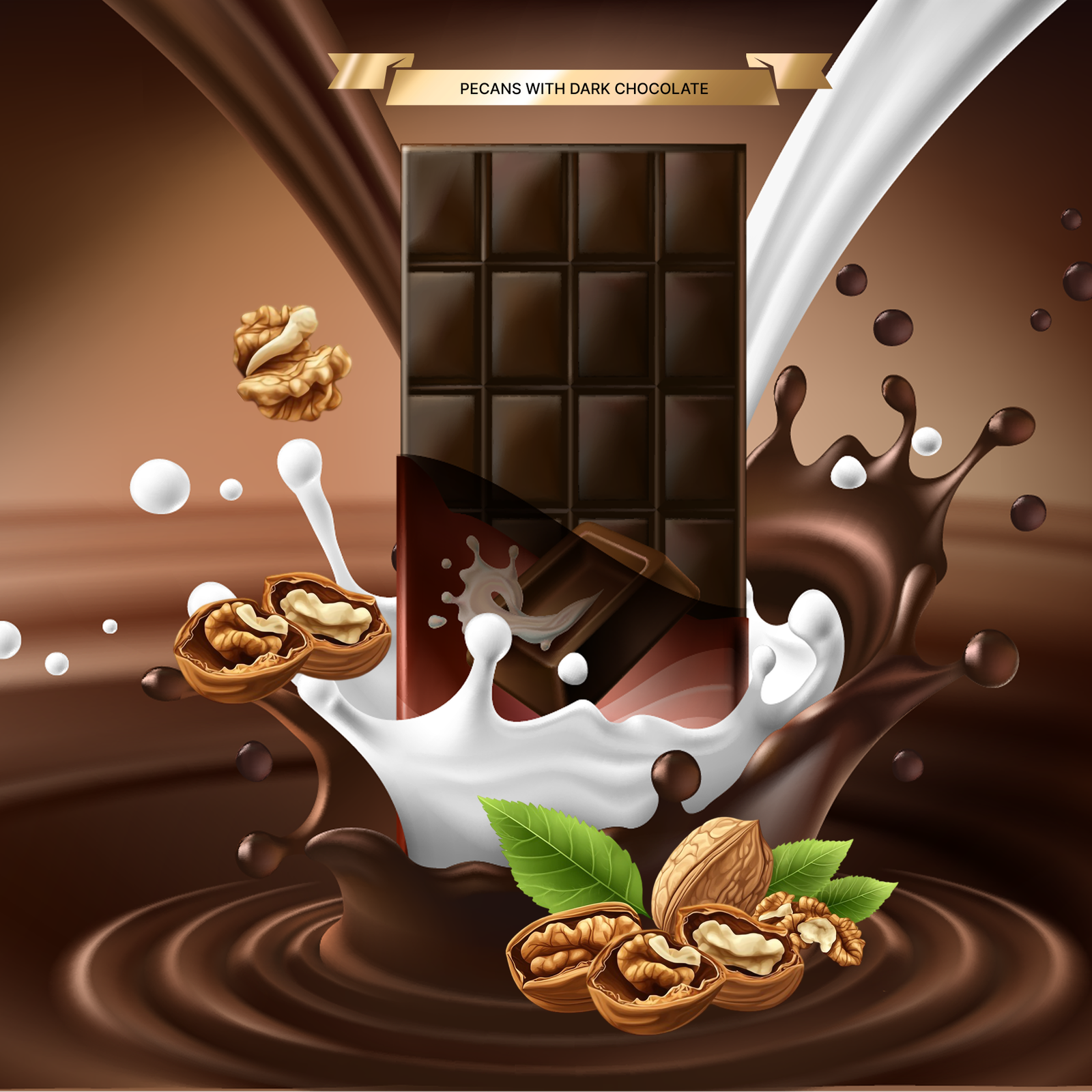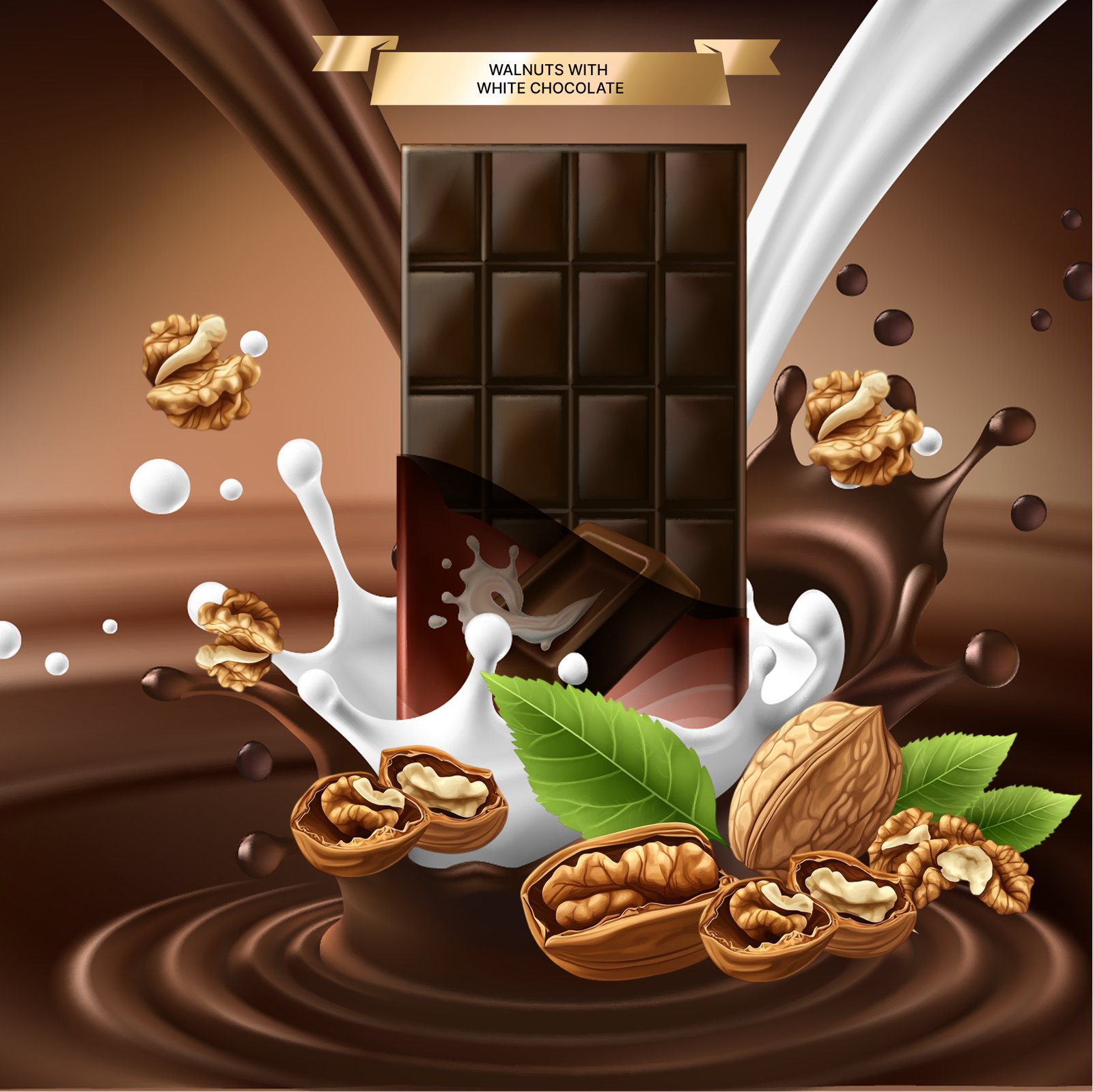 Creamy milk chocolate pieces with crunchy roasted walnuts, crafted with 100% premium ingredients for a luxurious taste.